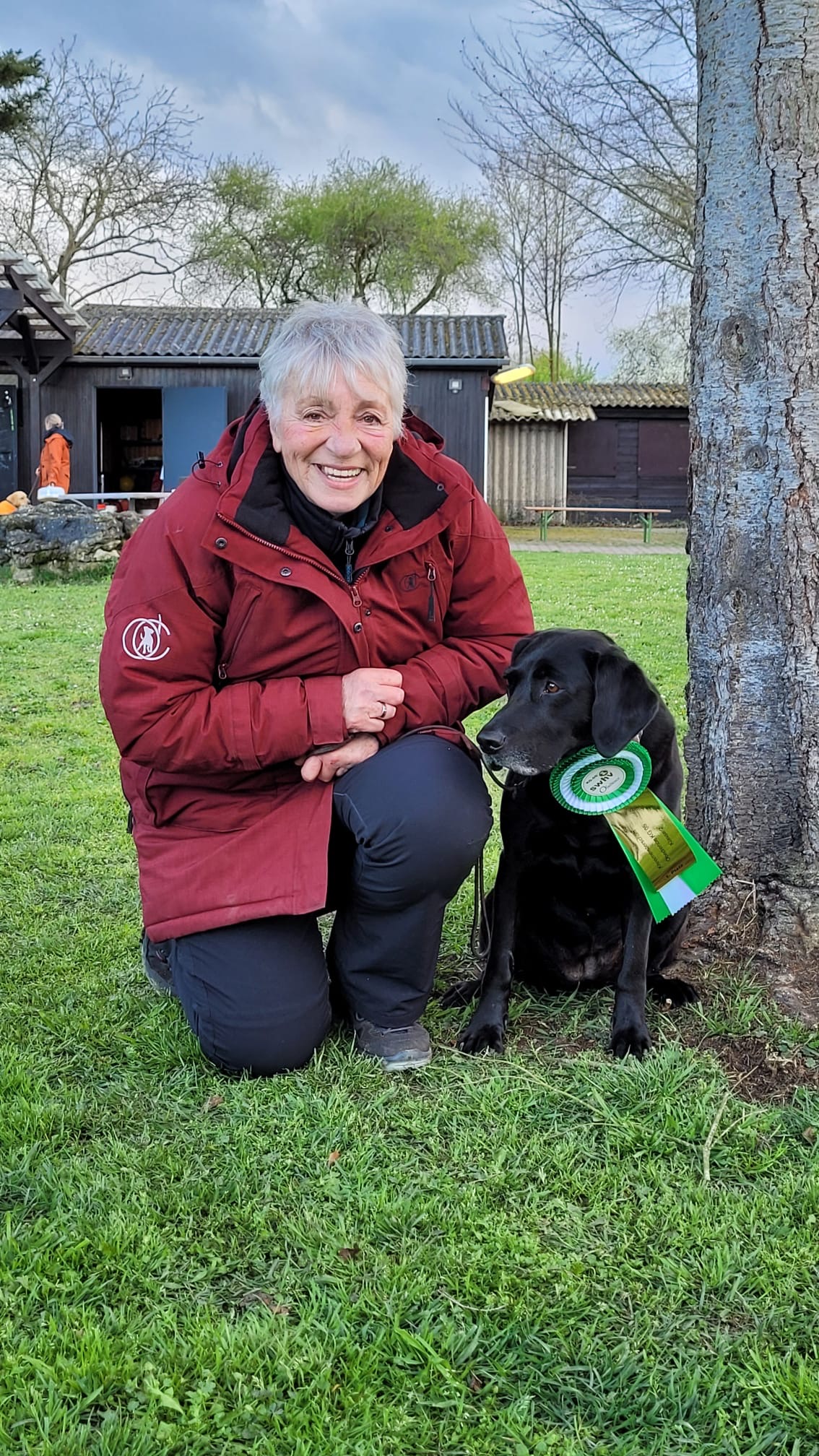Doris erhält mit Waldstürmer Chili in der Kreismeisterschaft Obedience Klasse 2 ein Vorzüglich.